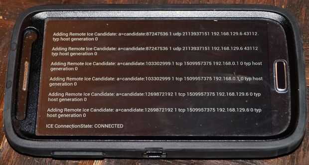 Si usted no recibe una conexión, conectar el teléfono a la estación de trabajo de desarrollo a través de USB, empezar ADT y lanzar la aplicación mientras la vista LogCat. También, abrir la consola en cromo - hay un montón de registro útil allí también.