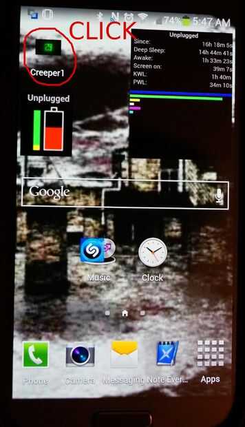 Si todo ha ido bien, la pantalla de la aplicación de CreeperAndroid cambiará a una imagen de enredadera verde. Aún puede acceder a la opción registro detallado deslizando a la derecha de la pantalla.