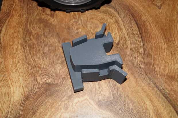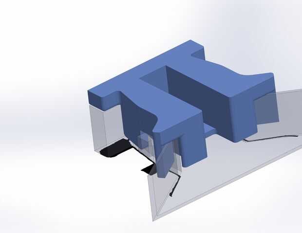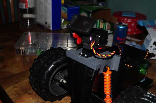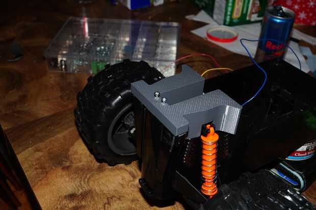 Utiliza SolidWorks para modelar la parte delantera del coche y entonces diseñó un receptor para los servos que se adapta perfectamente alrededor de la forma existente del coche.