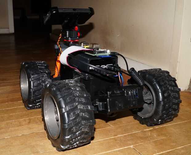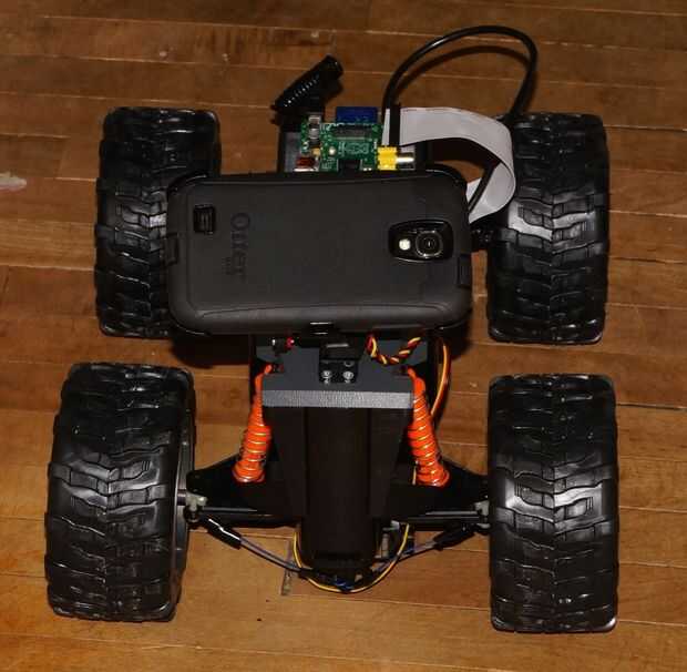 Enredadera zángano nace de un carro RC barato, que he modificado con un Android y frambuesa Pi, por lo que ahora puede ser conducida en una red WiFi desde cualquier navegador que soporta WebRTC. La enredadera transmite un flujo de vídeo, que permite al conductor controlar la enredadera desde una ubicación remota. También se admite audio bi-direccional, proporciona al conductor la posibilidad de conversar a través de la enredadera.