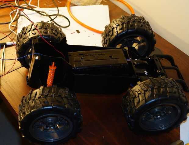 Peor aún, este diseño asume que el coche será instruido para encender sólo momentáneamente, b y c no tiene un controlador de velocidad y por lo tanto, va demasiado rápido para siempre requieren mucho de manera activa. Ya que definitivamente estamos construyendo un controlador de velocidad en el zumbido de la enredadera, el tiempo necesitamos dedicar torneado aumenta drásticamente. Puesto que el mecanismo de giro se basa en calarse un motor de corriente continua (que nunca debe ser hecho de todos modos), gastamos demasiado dibujo de tiempo acerca de 2A de la batería, que naturalmente destruyó el volante motor en unos 5 minutos de uso intenso.