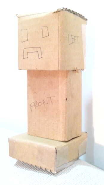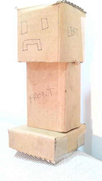 Tomar el cartón y cortarlo según las plantillas mencionadas. Después de cortar pegar las piezas y pintura el cartón con una foto de referencia de una enredadera...