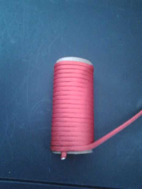 aprendí a hacerlo desde el post de Stormdrane. Forma un gran enredo libre para almacenar paracord. Este video muestra una sección de 50' de cable envuelto.