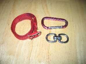 he estado tratando de encontrar o hacer una correa para mi trípode así que es fácil de llevar sin un bolso o sosteniendo en mi mano. Yo estaba buscando en mi armario para cualquier cuerda, pero encontré una correa de perro que ya no usamos.Esta corre
