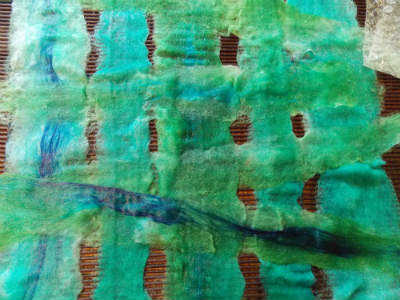 Ahora, estás listo para comenzar el proceso de afieltrado. Llene la botella con agua muy caliente y añadir una pareja arroja a chorros de jabón. Espolvorear bien la fibra. Coloque un pedazo de envoltura de plástico o de burbuja sobre una sección de la fibra y comenzar a frotar la superficie con sus manos a la obra el agua en la fibra. Usted quiere asegurarse de que la mecha está completamente saturado (no fieltro fibra seca). Añadir más agua, si es necesario. Hacer esto a todos de la fibra, otra vez, asegurándose de que está completamente mojado.