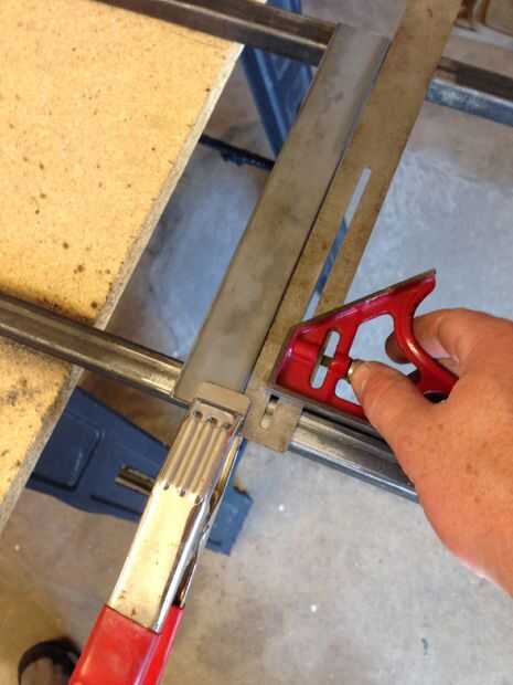 Elegí atornillar madera en algunos tableros de partículas para crear plantillas, puesto que cada empalme de las escaleras laterales es básicamente el mismo, entonces establecidos y afianzado con abrazadera del metal.