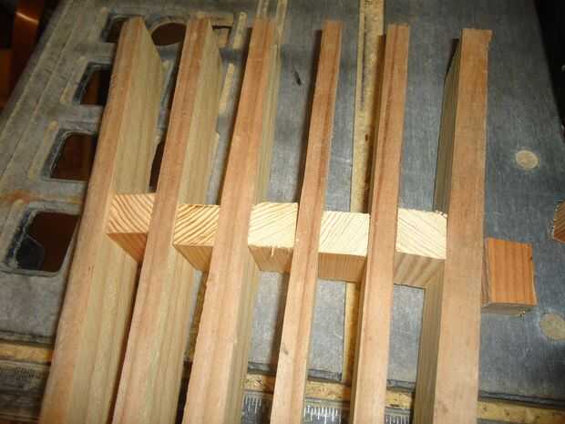 1. rasgar las tiras del enrejado sobre un 1/4" densamente. Corte cada tira a partir en el lado opuesto de la 2 x 4 desde el juego.