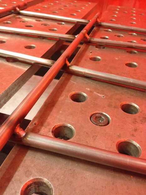 Piezas horizontales de tack weld piezas verticales. Dé vuelta. Repita en el otro lado.