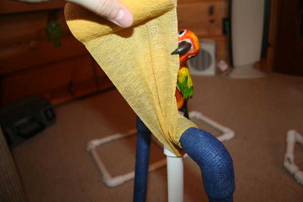 Si tu presupuesto o preferencia de limpieza requiere lijado en vez de envolver, utilice un grano medio curso. Desea hacer que el PVC no es tan resbaloso liso. He encontrado que sobre cuanto tarda para frotar el texto es más que suficiente. Frotar el dorso de la mano o la mejilla sobre el tubo para asegurarse de que no es tan áspera que irritarían a los pies de sus aves.