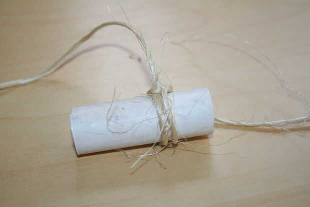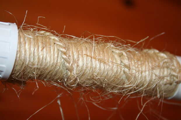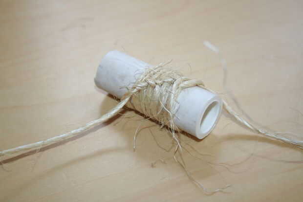 Si usted prefiere envolver con la cuerda del sisal ver las imágenes de abajo. Es apenas un nudo simple una y otra vez tiró cerca y apretado.