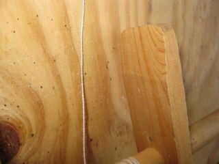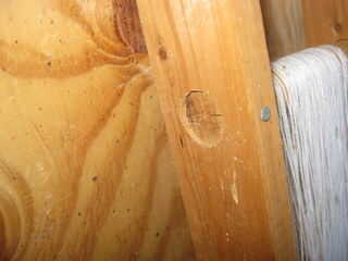 Hacer cualquier alisado final con la escofina o lija. Puede que necesite hacer algunos lijado de las espigas para obtener a través de los agujeros. Arme los tacos como se muestra en la foto. Taladros de pequeño diámetro piloto para los clavos del alambre fijar los pasadores a los lados.
