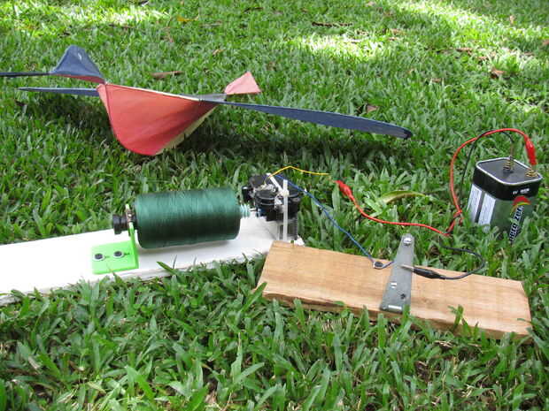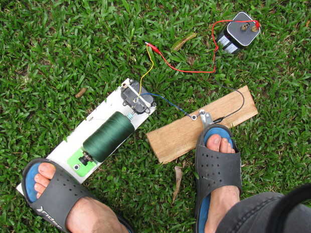 Esta devanadera de la cometa fue diseñada para fotografía de cometa muy alto vuelo y antena cometa. Ni unos ni otros realmente despegaron - literalmente. Mi reproductor de mp3 que tenía una cámara en él resultó para ser demasiado pesado para mi pequeño cometa. También, el otro problema era que rara vez conseguimos constante viento aquí. Estamos en medio de la selva muchas millas de la costa y casi nunca sopla viento como me gusta que para volar cometas.