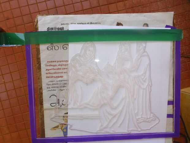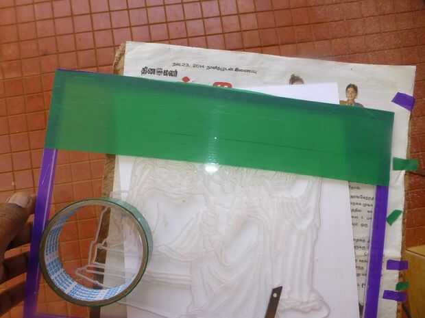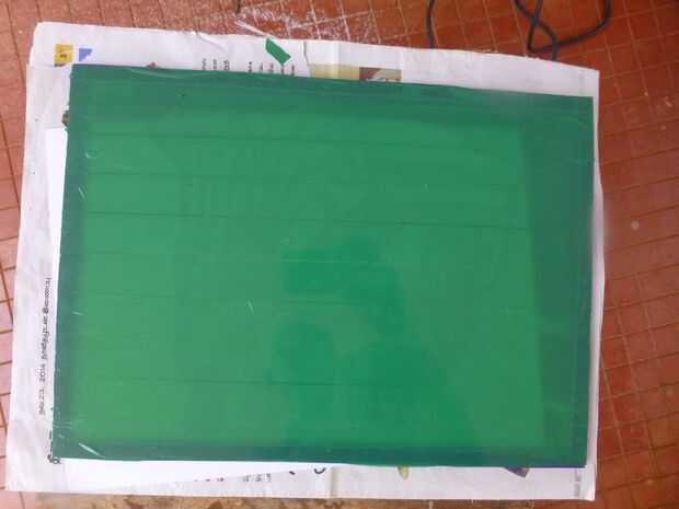 Ahora podemos cubrir la parte posterior con un golpecito adhesivo colores diferentes. Aquí he usado color verde para cubrir la espalda.