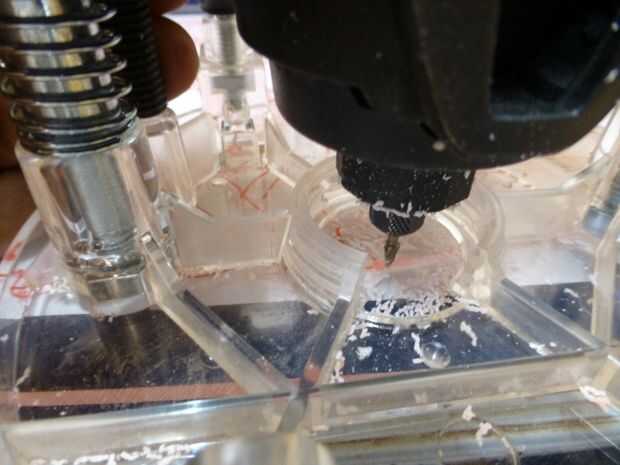 • Cepillo de vez en cuando hacia fuera los bits enrutados desde la hoja de acrílico. Esto le dará clara visión de las líneas de traza.
