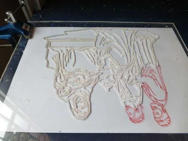Enrutamiento de línea de arte, en la hoja de acrílico (6 / 10 paso)