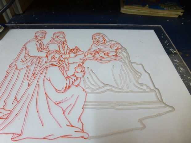 • Para la parte superior, he entregado la hoja de acrílico en la mesa de trabajo y completar enrutamiento.