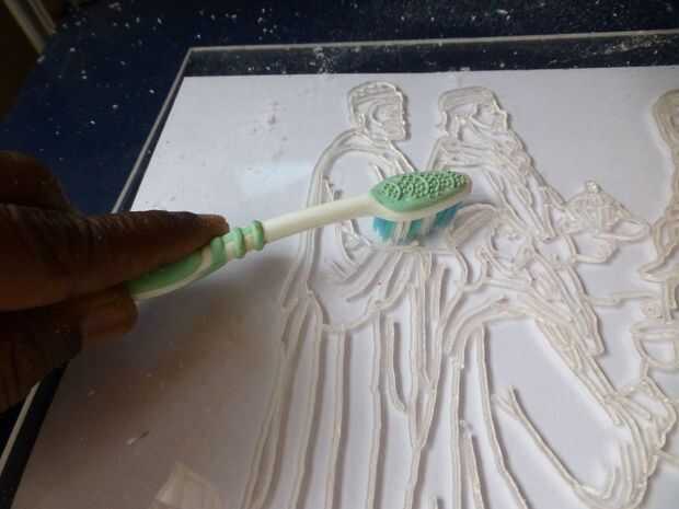 • Aquí se puede ver en estas fotos, que he empezado desde abajo a la derecha. Después de completar el lado derecho, he cambiado de puesto la herramienta hacia la izquierda y terminó la porción inferior del boceto.