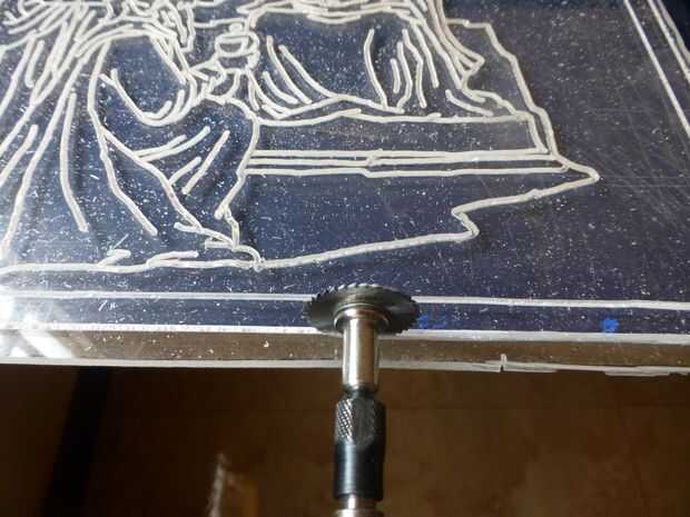 Enrutamiento de línea de arte, en la hoja de acrílico (7 / 10 paso)