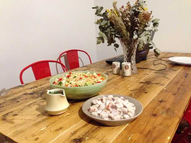 Declaración adicional sobre esta receta. Esta receta sobre todo gira en torno a la adición o sustracción de ingredientes. Fácilmente puede sub en cualquier pescado en vez de pez espada, pero tenga en cuenta que la más rosada la carne más tiempo tienes que dejarlo en el zumo de limón. Salmón por ejemplo, se debe dejar para unos 8-10 horas para que esté listo para comer. También si usted es perezoso, o un vegetariano, esta ensalada sin carne va muy bien para una cena o un almuerzo de trabajo. También he hecho esta ensalada con pan cocido de carne de res o pollo y que funciona bien así. Yo también he sustituido la col espinaca o lechuga y funcionó bien. Por lo tanto, si usted no puede encontrar todos los ingredientes, trate de imaginar un buen sustituto para lo que falta y sujeto a su gusto. El aderezo es lo que principalmente hace de este una comida realmente deliciosa, y conseguir una buena relación ácida con respecto a la sal, especias y hierbas frescas puede ser difícil. Así que trate de no jugar demasiado con esa parte.