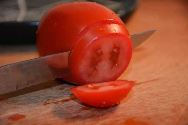 2) preparar los tomates, aceitunas y mozzarella rebanado en rodajas de 1/4 de pulgada