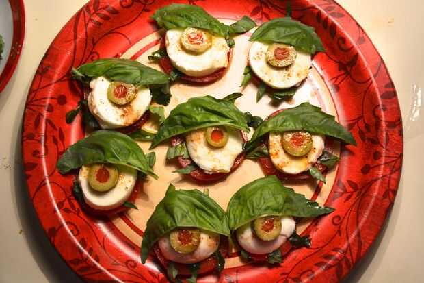 he decidido seguir con el tema de parte de adultos para el resto de esta temporada de Halloween particular, así que el tutorial de hoy es una torcedura shucos, escalofriante en un clásico aperitivo Italiano: Ensalada caprese. Este azote para sus invi