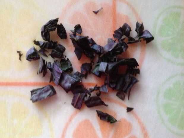 Lo dice Basilio es hacer una chiffonade corte; enrollar las hojas, cortarlas en tiras delgadas y luego cortar las tiras en trozos más pequeños.