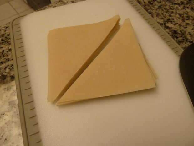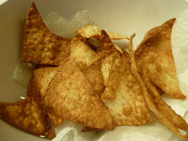 Una vez caliente, freír los won ton traingles. Estas ocupan menos de 30 segundos para freír si el aceite está caliente y listo.