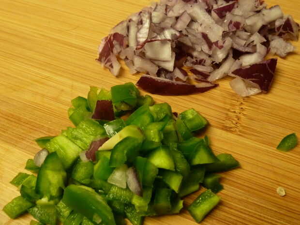 Cortar el pimiento en una pequeña tajada áspera.