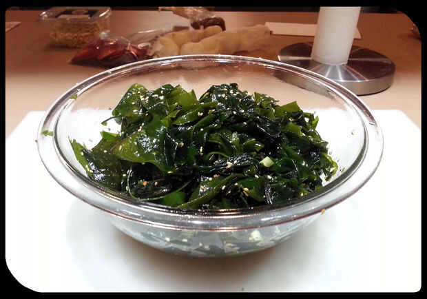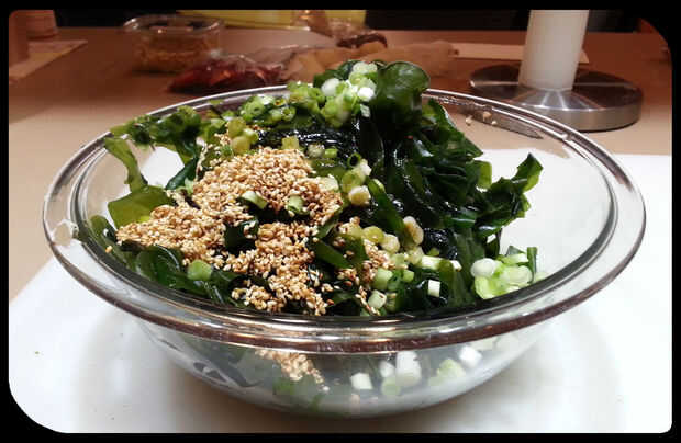 Echar todos los ingredientes en el recipiente con las algas y revolver bien. ¡ Disfrute!