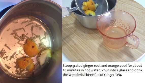 Lo que nos lleva a, ¿qué pasa si usted rallado demasiado jengibre para la ensalada? ¿Sólo tirarla? No.. hacer un té. Hervir 1/2 a 3/4 de taza de agua, agregar el jengibre rallado adicional con un pedazo de cáscara de limón o naranja. Dejar empapar durante unos diez minutos y escurrir en una taza y beber de los grandes beneficios de Ginger Tea!!