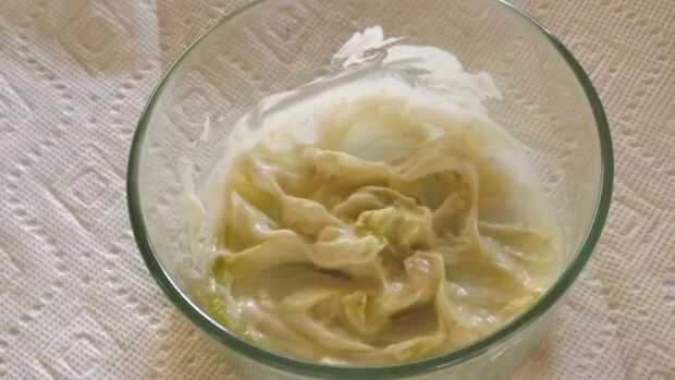 1. Apriete la pasta de Wasabi en el fondo de un vaso de 4 tazas tazón. Añadir dos cucharadas de milagro látigo luz y mezcla bien.