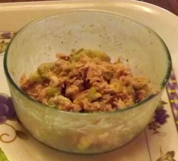 2. Incorpore el atún, romper los trozos grandes con un tenedor; agregar la cebolla verde y apio.