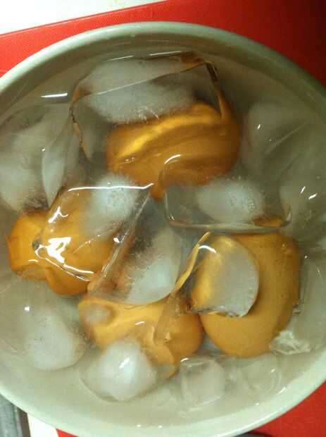 Hacer un baño de hielo para los huevos (= hielo + agua)
