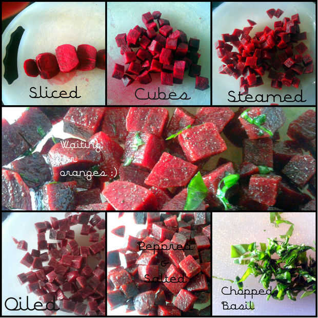 Deje que el sit de remolacha mientras Pele y preparar naranjas.