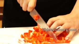 Quitar el tallo y las semillas y dados medianos 500 gramos de pimiento rojo.