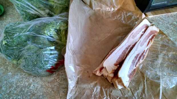 Para esta receta necesitarás:Mezcla de torta de chocolate Fudge (en una caja, porque es cómo ruedo)1 1/4 taza de leche3 huevos1/2 taza de aceite vegetalGlaseado de Fudge de chocolateBacon microondasLatas del molleteUn recipiente grandeMezclador eléct