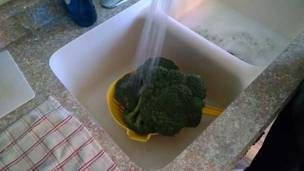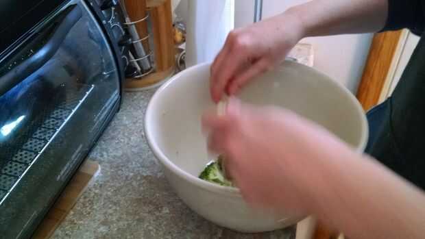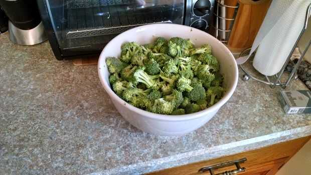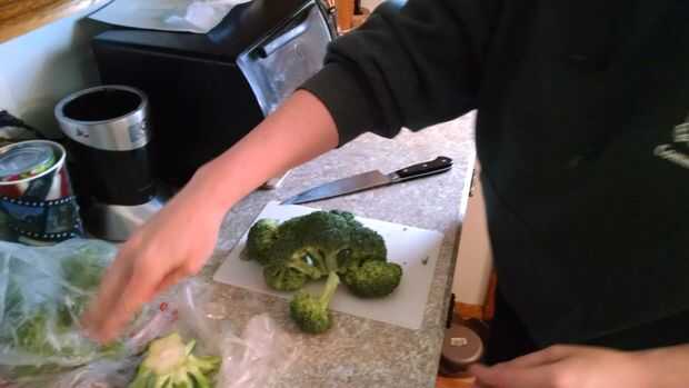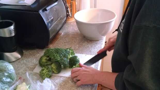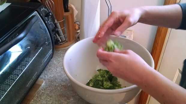 Iniciar este paso por enjuagar el brócoli. Corte de tallo para que sólo tenga los flósculos. Rompa o corte los floretes en pedazos y coloque en el tazón de fuente.
