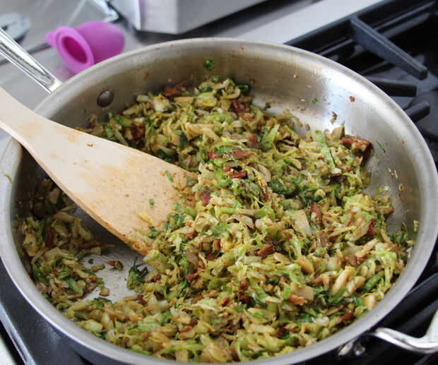 En este punto, probar los brotes de cocción. Si no está lo suficientemente blanda para usted, baje el calor a bajo y ponga la tapa en. Cocer hasta que la textura es correcta. : D