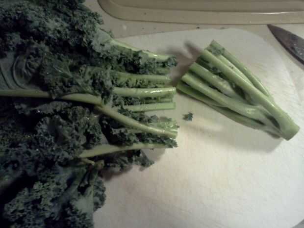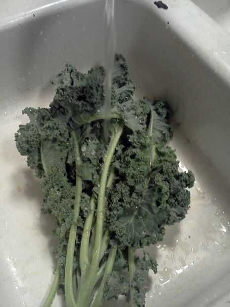 Paso 3: Lavar y cortar la col rizada