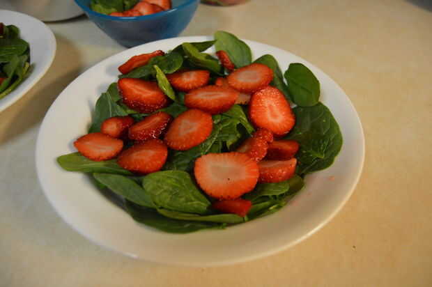 Ensalada de espinaca nuez fresa (4 / 8 paso)