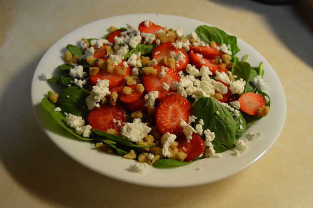 A continuación añadir el queso de cabra a la parte superior de la ensalada. Ahora termine de hacer la parte de la ensalada de la ensalada!