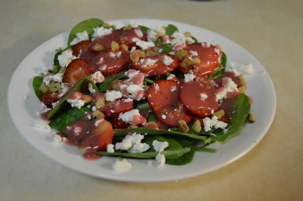 una simple ensalada rápida para lanzar juntos que contienen las semillas de espinacas, fresas y Granada. Esta ensalada es buena porque es flexible. Fácilmente puede Agregar o quitar los ingredientes que usted desee. En mi opinión personal, como tiene