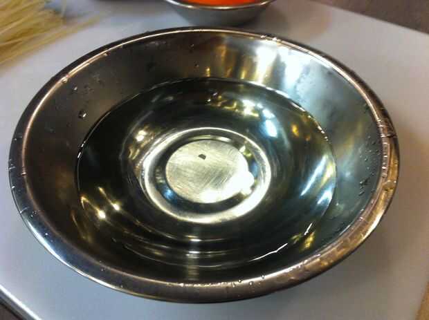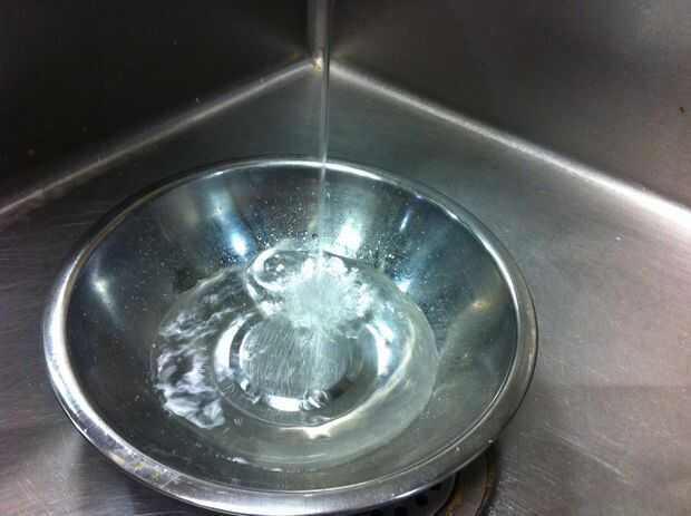 1. Tome el tazón de fuente grande y llenar la mitad con agua caliente del grifo.