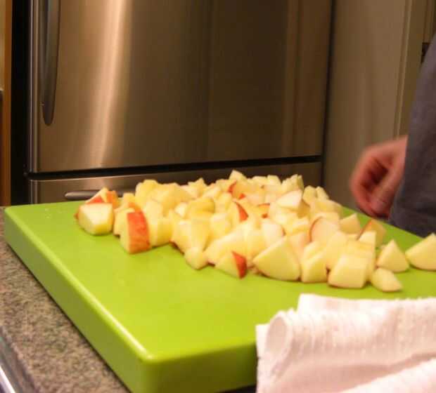Una vez que sus manzanas son simplemente cubo todos y fuego en el recipiente.