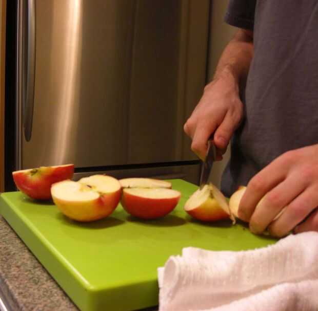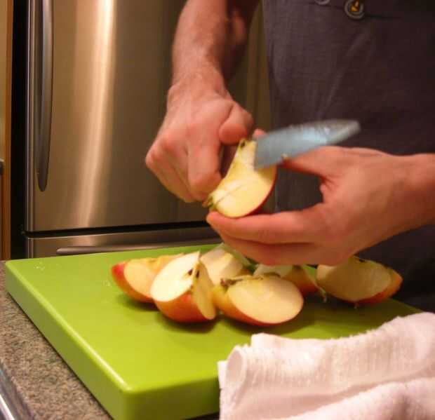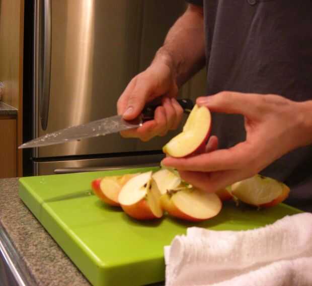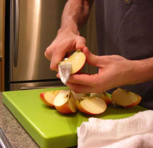 Corte de la primera etapa de forma de V en la base de la manzana.