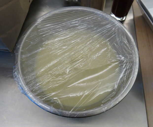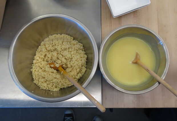 Cuando ambos están hechas, escurrir la pasta y mezclar con la salsa. Refrigerar esta noche a la mañana.