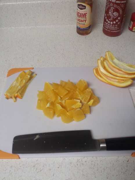 2. Quitar las semillas y cortar las cuñas en tercios.