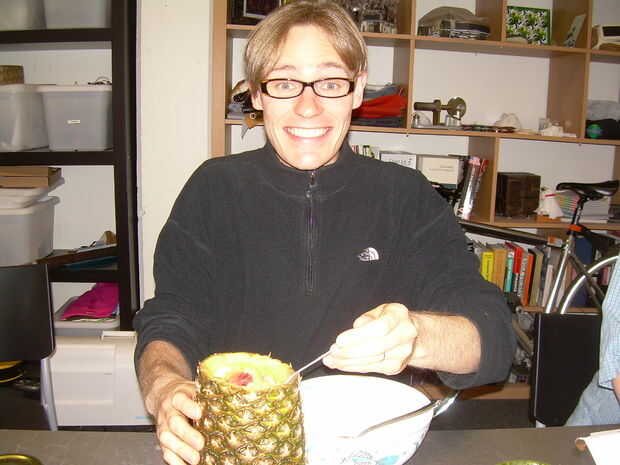 Un corer de la piña hace posible servir la ensalada de frutas en la concha de la piña. Es honestamente un poco tonta, pero, sin embargo, divertido y memorable. Asegúrese de cortar la piña en un recipiente, como el jugo se derrame fuera de la parte superior mientras se trabaja.