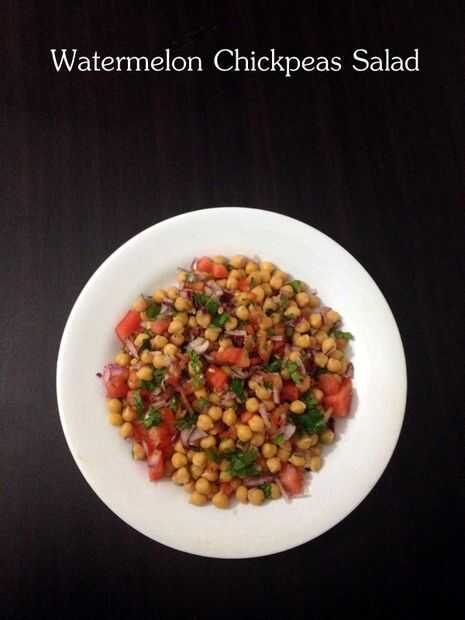 Ensalada de garbanzos de sandía es la ensalada de verano perfecto. Su muy saludable y el estómago relleno plato. Mientras lo hacía, tenía una duda "Sandía va bien con garbanzos?". Realmente hace. La combinación de garbanzos, zumo de sandía y limón fue tan grande. Mi esposo le gusta mucho :). Si desea un sabor picante, agregar algunos pizca de hojuelas de Chile en él.