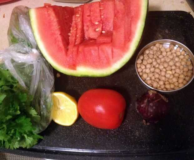 Ensalada de garbanzos de sandía (1 / 5 paso)
